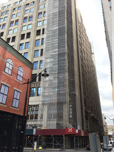 The nice corner building is being restored.